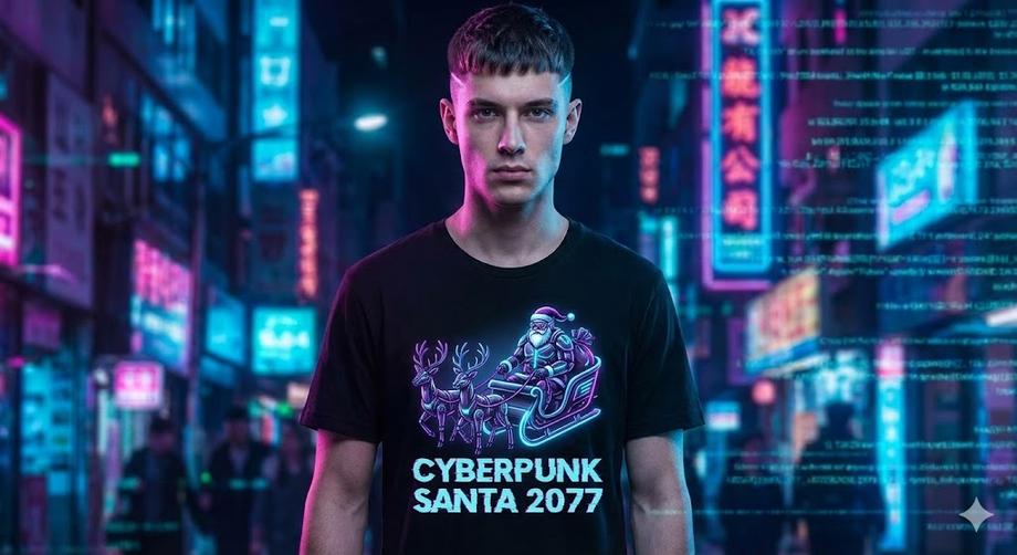 เอาใจสาย Tech ด้วยสไตล์ Cyberpunk ใช้สีนีออนบนพื้นดำ นี่คือรูปแบบของ เสื้อคริสต์มาสพิมพ์ลาย ที่วัยรุ่นปี 2025 ตามหามากที่สุด