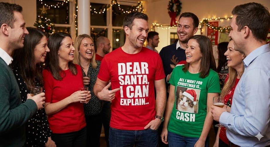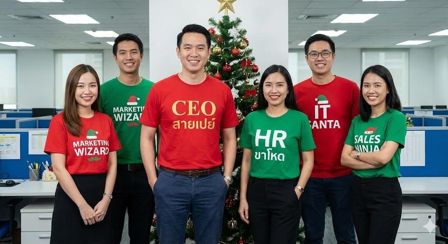 สำหรับทีมบริษัท ลองสั่งทำ เสื้อคริสต์มาสพิมพ์ลาย ที่ระบุฉายา เช่น "CEO สายเปย์" หรือ "HR ขาโหด" การใช้เสื้อเป็นธีมทีมจะช่วยสร้างความสามัคคีได้ดีเยี่ยม