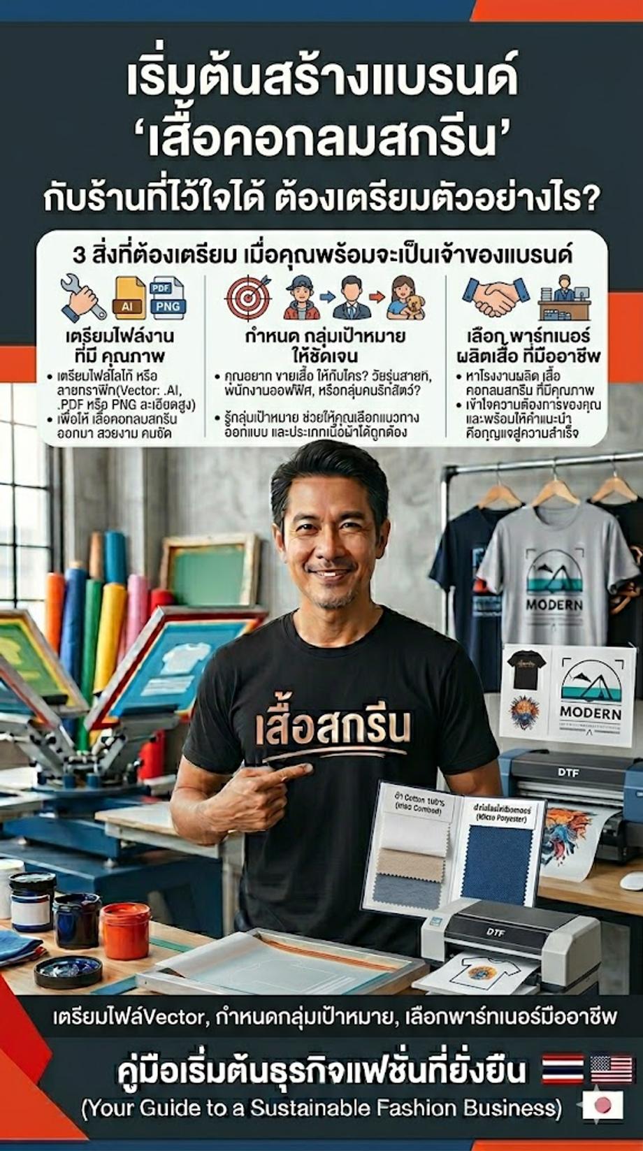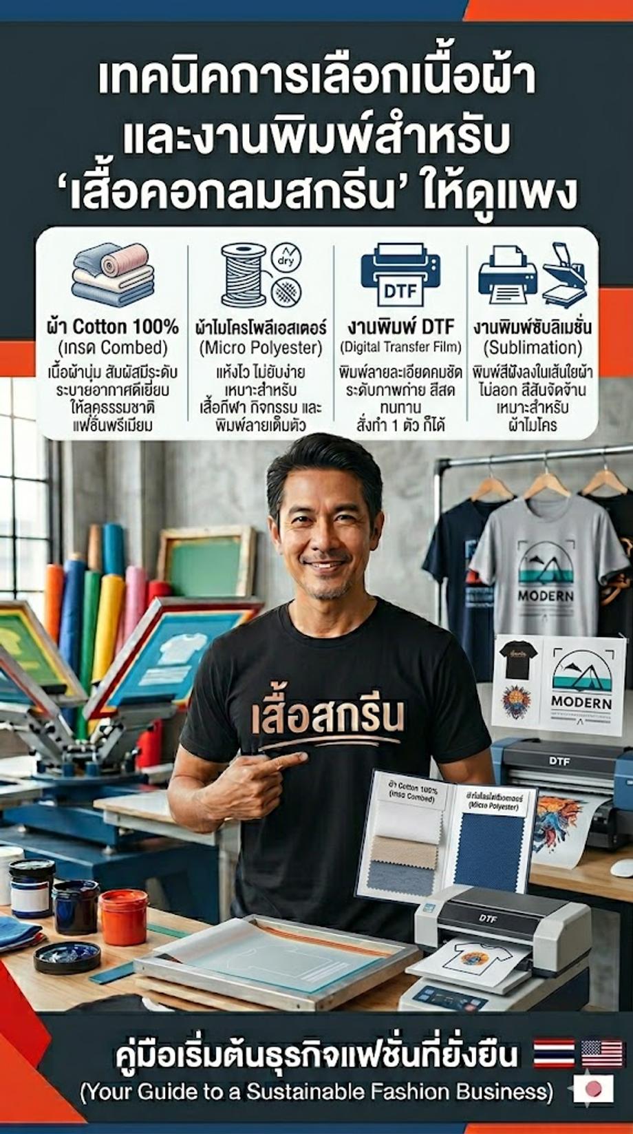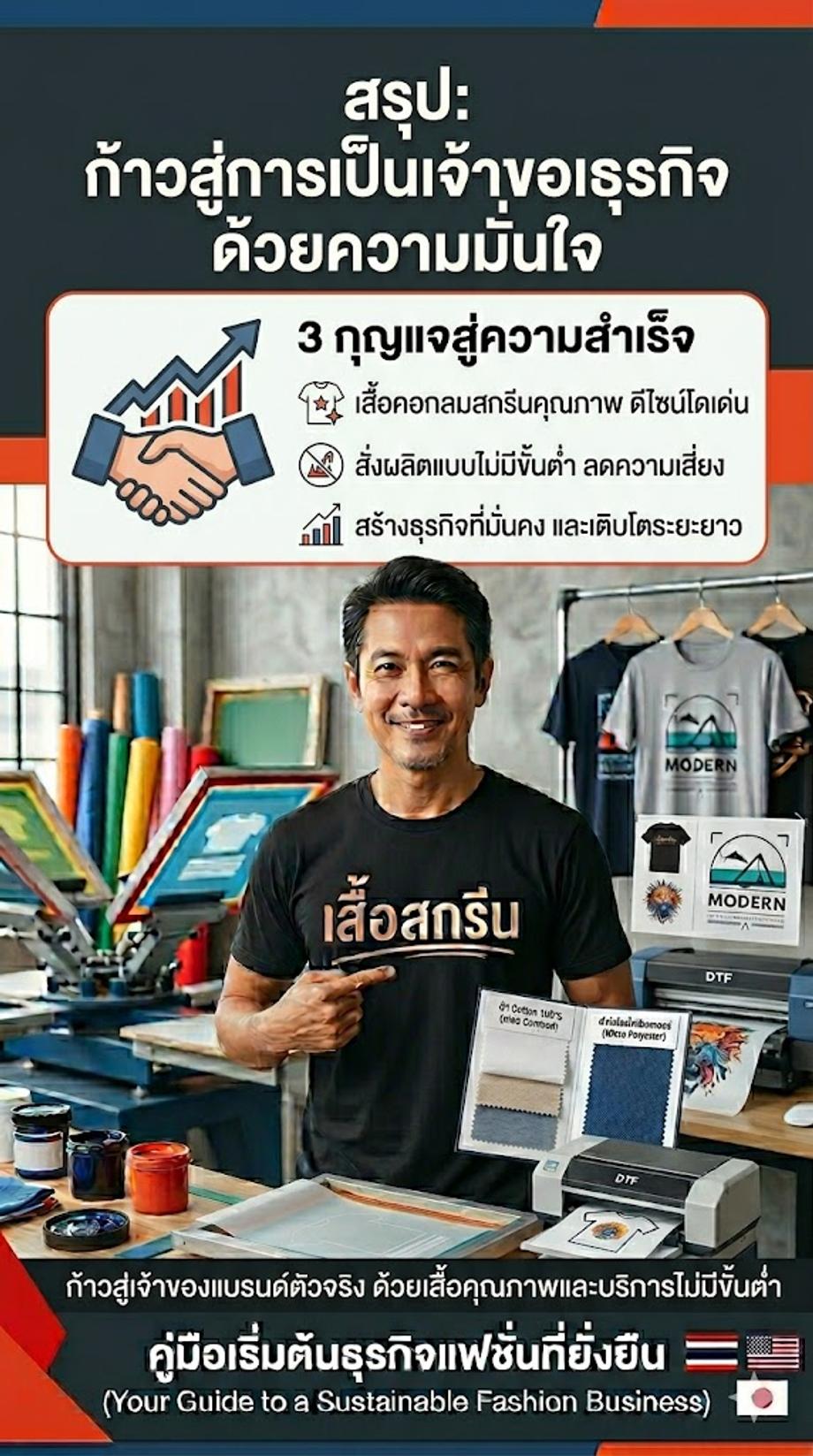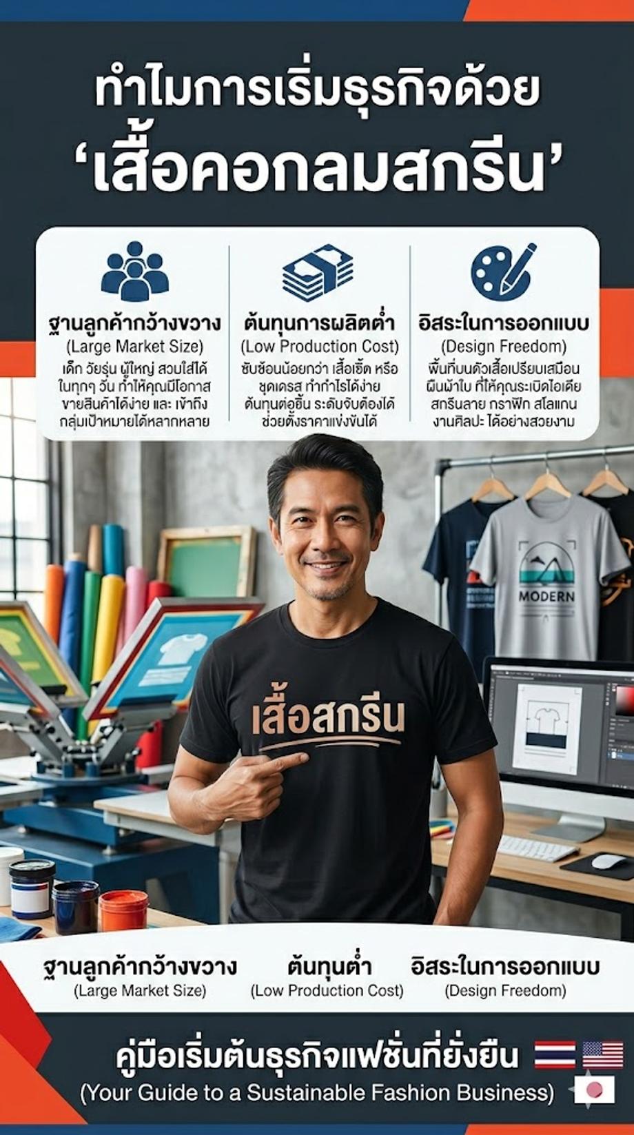หากคุณ เป็นคนหนึ่ง ที่อยากมีรายได้ เสริม หรือ อยากปั้น แบรนด์เสื้อยืด ของตัวเอง ให้เติบโต บทความนี้ จะพาคุณ ไปเจาะลึก ทุกแง่มุม ของการสั่งทำ เสื้อคอกลมสกรีน ตั้งแต่ การวางแผน ธุรกิจ ไปจนถึง การเลือก เนื้อผ้า และ งานพิมพ์ เพื่อให้คุณ เริ่มต้น ธุรกิจ ได้อย่าง มั่นใจ และ มีโอกาส ประสบความสำเร็จ มากที่สุด ค่ะ!