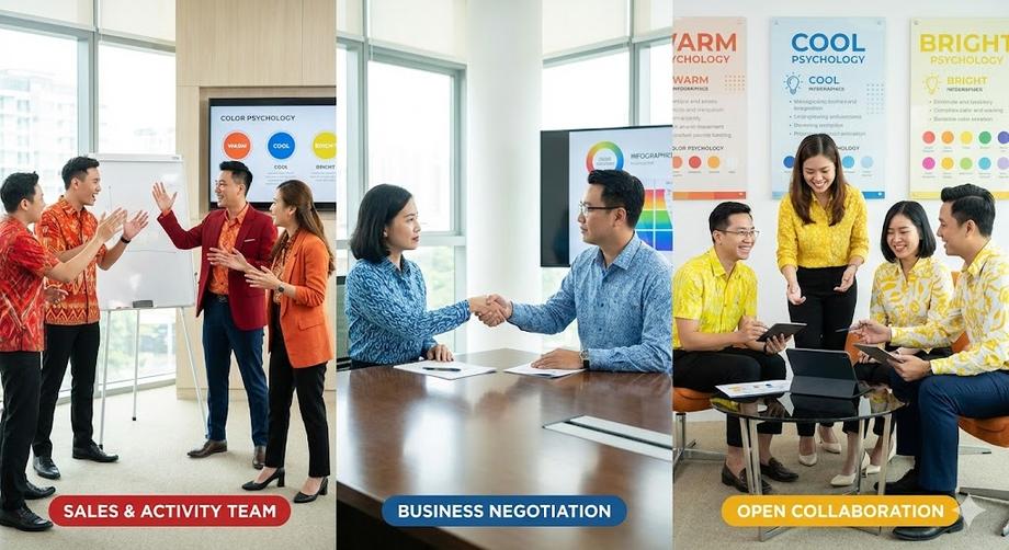 โทนร้อน (แดง, ส้ม) : เมื่ออยู่บน เสื้อพิมพ์ลาย จะช่วยกระตุ้นความกระตือรือร้น เหมาะกับทีมขายหรือฝ่ายกิจกรรม